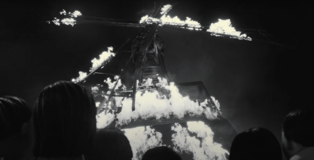 Fig. 10: The burning windmill, reminding audiences of Frankenstein, yet updating the story as Sparky is brought back to life.